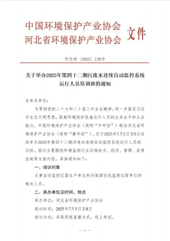 • 2025-06-12關(guān)于舉辦2025年第四十二期污廢水連續(xù)自動(dòng)監(jiān)控系統(tǒng)運(yùn)行人員培訓(xùn)班的通知